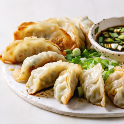 Japanese vegetable dumplings, pan-fried and served with a spicy vinegar soy sauce.